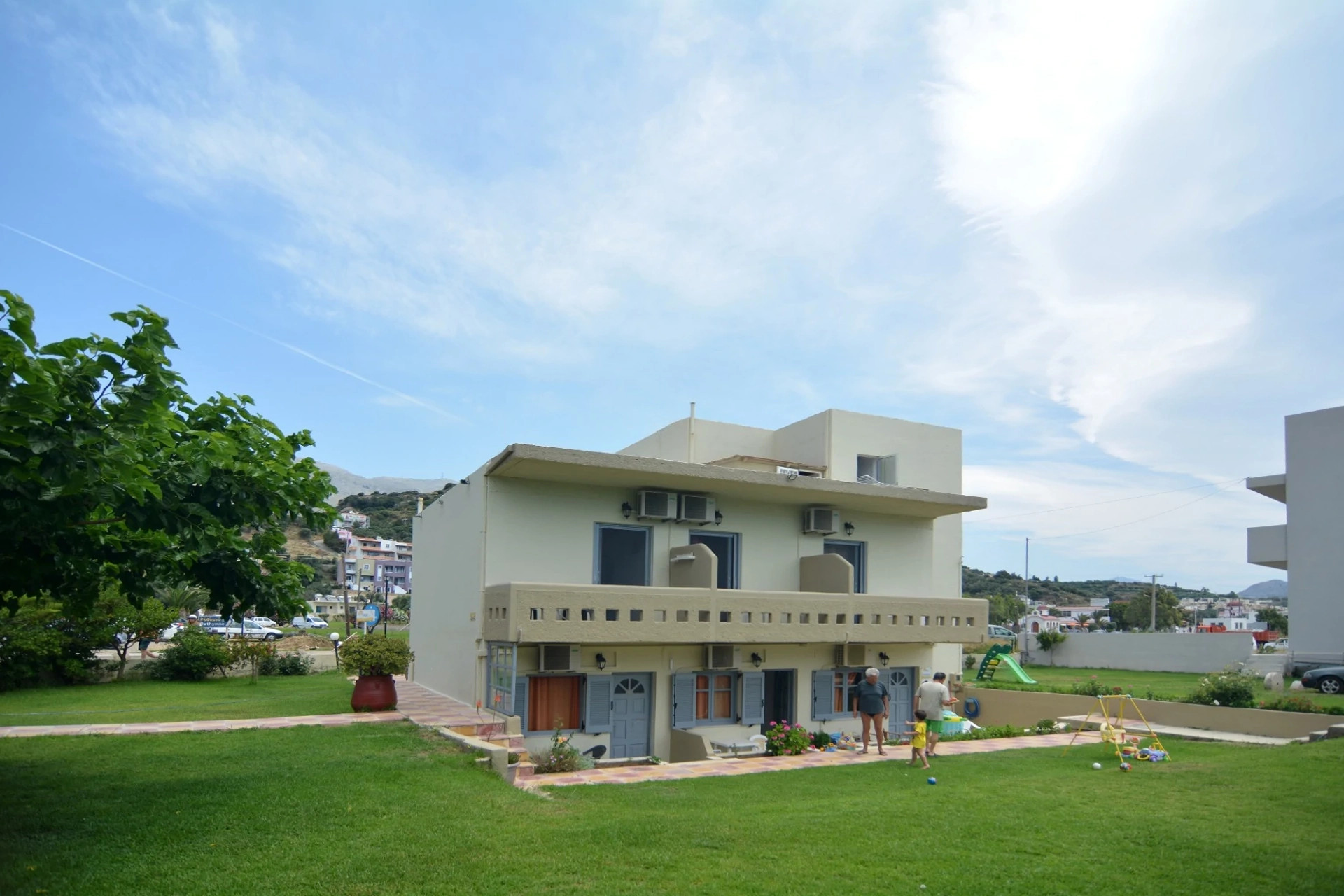 The estate is build by the wave, in front of the cleanest beach of Plakias. In a place of 4 acres, full of green where children can play free and safely while their parents can enjoy sunbathing with a cool drink or coffee. All the balconies have a wonderful view of the Libyan Sea and the mountain. You will enjoy quite holidays in the sea and the golden sand of the famous beach of Plakias. You can also find restaurants, tavern and supermarkets very near. There is easy access for excursions, sightseeing at the archaeological places, historical monasteries, picturesque beaches and villages of Crete for you to know by yourself the rich cultural heritage and tradition of the biggest Greek island.